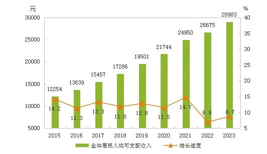 全體居民人均可支配收入28983元,比上年增長8.7%。其中,城鎮(zhèn)居民人均可支配收入51900元,增長6.5%;農(nóng)村居民人均可支配收入19924元,增長9.4%。