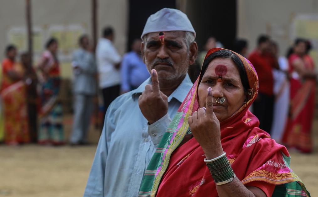 2019年4月29日,在印度孟買,人們排隊(duì)投票。新華社發(fā)