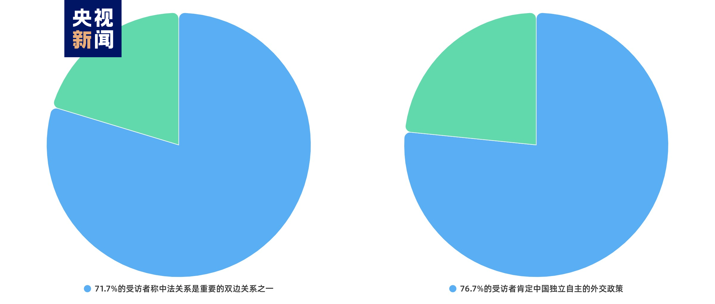 調(diào)查中,71.7%的受訪者認(rèn)為中法關(guān)系是全球重要的雙邊關(guān)系之一;61.6%的受訪者對中法關(guān)系未來的發(fā)展表示樂觀,期待雙方進一步加強在經(jīng)貿(mào)、科技等領(lǐng)域的合作;65.1%的受訪者認(rèn)為,中法在國際事務(wù)上的密切合作有利于促進世界和平與發(fā)展。