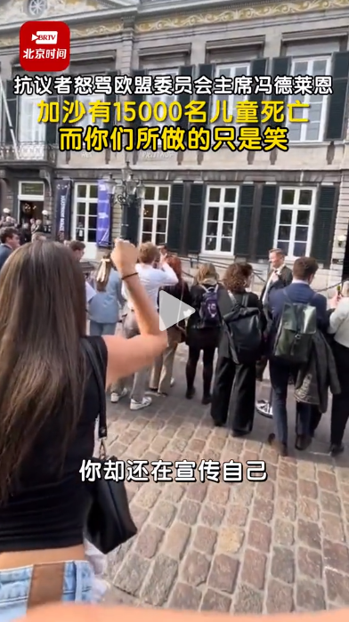 抗議者怒罵歐盟委員會主席馮德萊恩:加沙有15000名兒童死亡 而你們所做的只是笑