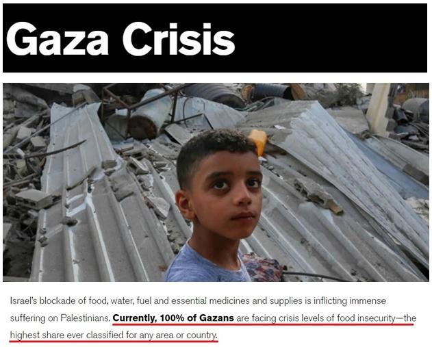 而根據(jù)國際救援委員會(IRC)的統(tǒng)計,目前,加沙的200多萬巴勒斯坦民眾每天都面臨危險和災難。以色列對糧食、水、燃料和基本藥品及用品的封鎖正在給巴勒斯坦人造成巨大痛苦。目前,100%的加沙人面臨著糧食不安全的危機,達到世界上所有國家和地區(qū)有記錄以來的最高水平。