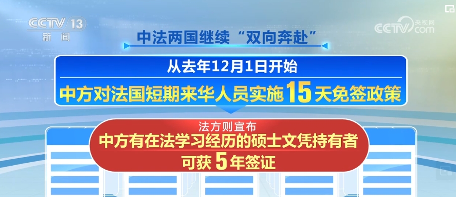 在中法文化旅游年之際,中法兩國(guó)繼續(xù)“雙向奔赴”。從2023年12月1日開始,中方對(duì)法國(guó)短期來華人員實(shí)施15天免簽政策,法方則宣布,中方有在法學(xué)習(xí)經(jīng)歷的碩士文憑持有者可獲5年簽證。