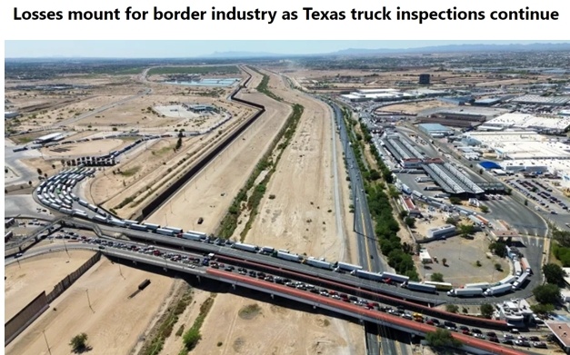 近日,為應對近期大規(guī)模移民潮,美國得克薩斯州政府在美墨邊境重新設置了隨機檢查站,宣布對進入美國的貨運卡車進行額外安全檢查,造成卡車嚴重擁堵。