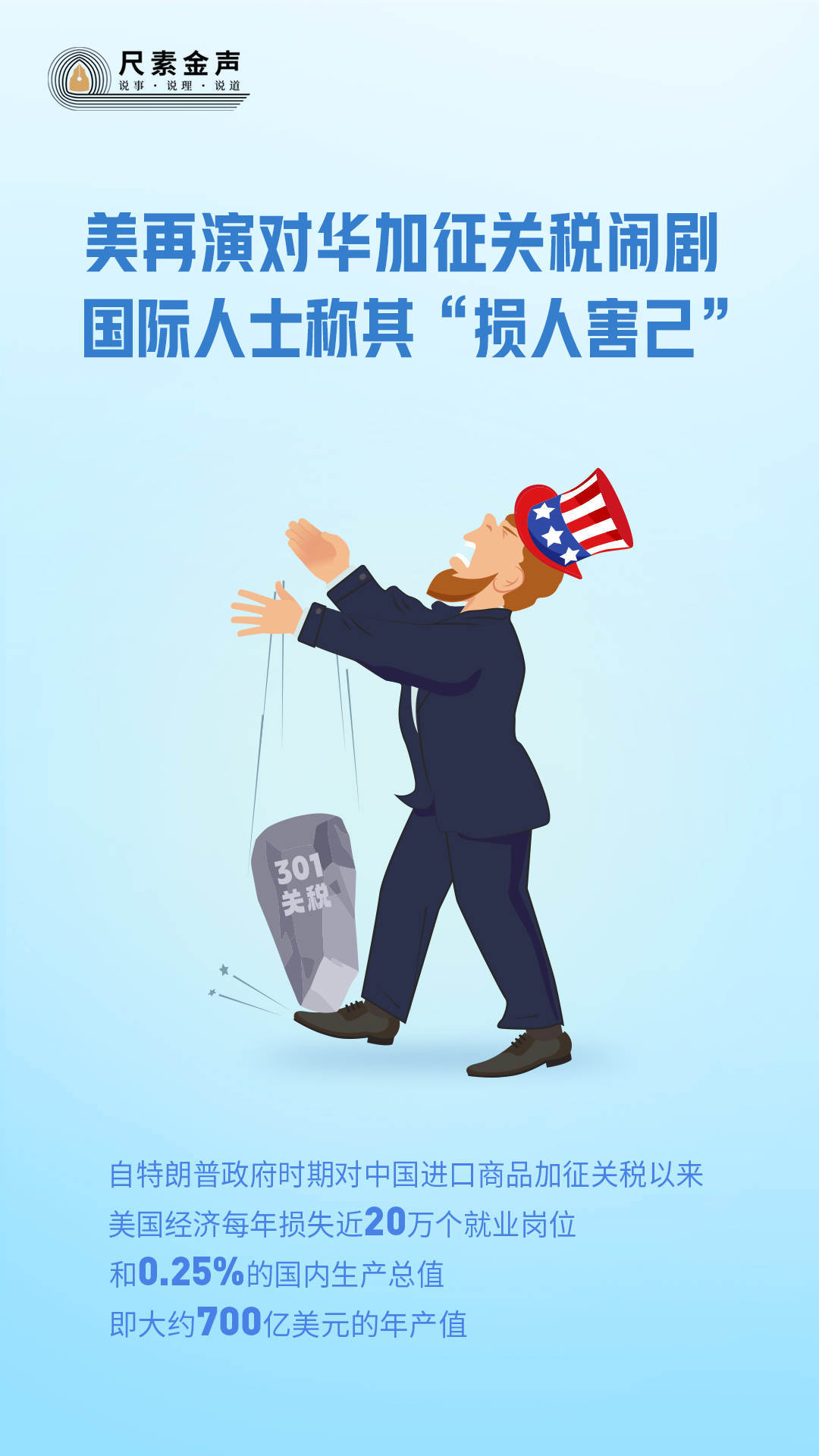 根據(jù)美國(guó)稅務(wù)基金會(huì)的數(shù)據(jù),自特朗普政府時(shí)期對(duì)中國(guó)進(jìn)口商品加征關(guān)稅以來(lái),美國(guó)經(jīng)濟(jì)每年損失近20萬(wàn)個(gè)就業(yè)崗位和0.25%的國(guó)內(nèi)生產(chǎn)總值,即大約700億美元的年產(chǎn)值。