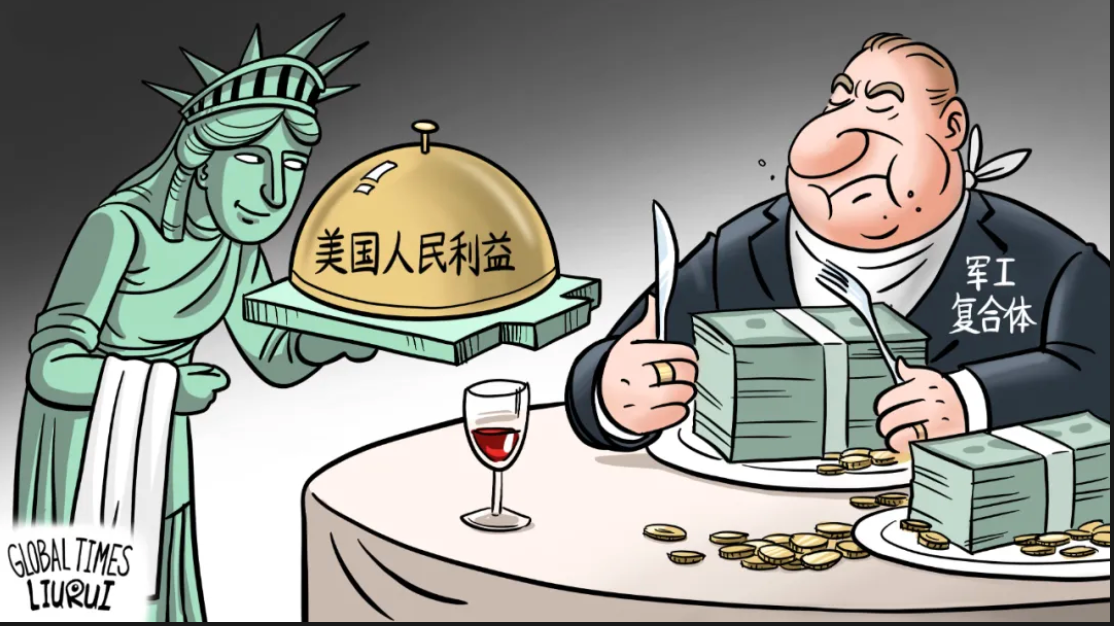 斯德哥爾摩國(guó)際和平研究所數(shù)據(jù)顯示,美國(guó)2023年軍費(fèi)占全球軍費(fèi)總支出的37%,超過(guò)位居其后的9個(gè)國(guó)家之和,是當(dāng)之無(wú)愧的最大軍費(fèi)支出國(guó)。天價(jià)軍費(fèi)讓美國(guó)軍工復(fù)合體賺得盆滿(mǎn)缽滿(mǎn),卻導(dǎo)致大量公共資源被無(wú)情蠶食。
