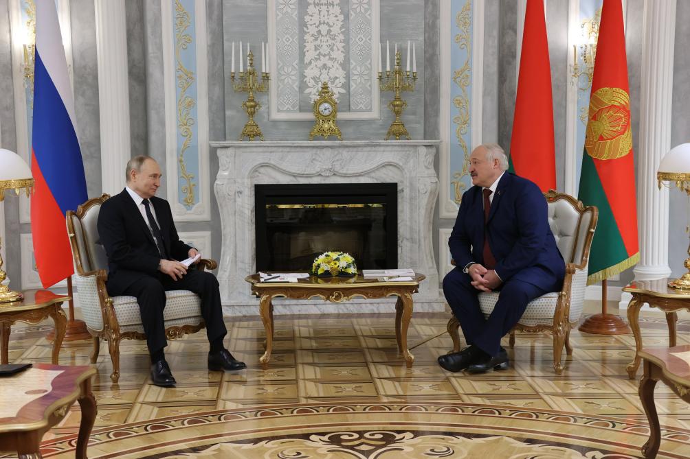 5月24日,俄羅斯總統(tǒng)普京(左)與白俄羅斯總統(tǒng)盧卡申科在白俄羅斯首都明斯克舉行會談。新華社發(fā)(白俄羅斯總統(tǒng)網站供圖)