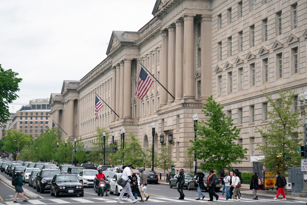 這是4月25日在美國(guó)首都華盛頓拍攝的商務(wù)部大樓。新華社記者劉杰攝