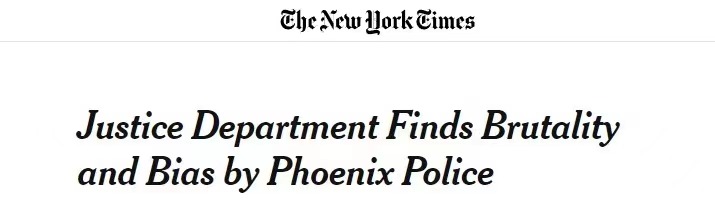 據(jù)《紐約時(shí)報(bào)》報(bào)道,美國司法部13日對(duì)亞利桑那州首府菲尼克斯市的警務(wù)工作進(jìn)行了全面審查,發(fā)現(xiàn)該市存在嚴(yán)重歧視非裔、西班牙裔和美洲原住民,經(jīng)常侵犯無家可歸者的權(quán)利以及過度使用武力等現(xiàn)象。