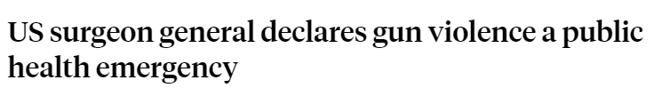據(jù)美國(guó)廣播公司(ABC)25日?qǐng)?bào)道,美國(guó)衛(wèi)生局局長(zhǎng)維維克·穆西當(dāng)天宣布,槍支暴力成為一場(chǎng)公共衛(wèi)生危機(jī),原因是涉及槍支的傷亡人數(shù)快速增長(zhǎng)。