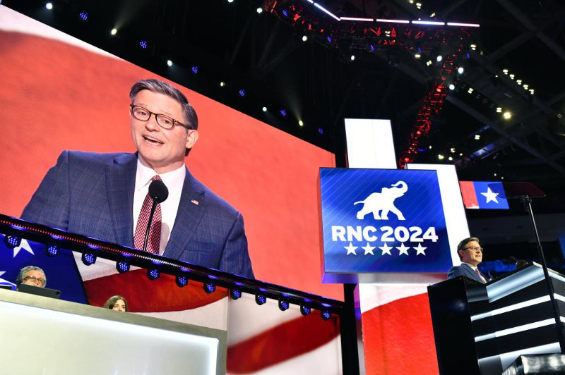 7月15日,在美國(guó)密爾沃基舉行的共和黨全國(guó)代表大會(huì)上,美國(guó)國(guó)會(huì)眾議院共和黨籍議長(zhǎng)邁克·約翰遜正式宣布提名特朗普和萬斯為共和黨總統(tǒng)和副總統(tǒng)候選人。新華社記者李睿攝