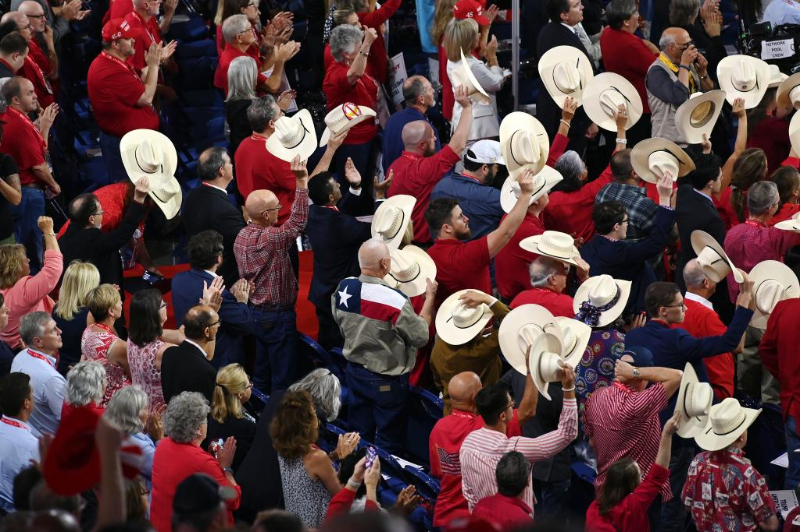特朗普右耳包著繃帶,15日出現(xiàn)在大會(huì)現(xiàn)場(chǎng)時(shí),共和黨代表們紛紛起立,發(fā)出熱烈歡呼。按美國(guó)媒體說法,當(dāng)時(shí)是特朗普被正式提名的“數(shù)小時(shí)后”。
