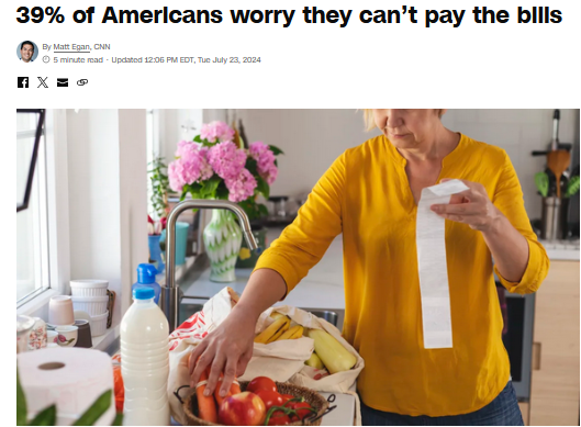 中國日報網(wǎng)7月24日電 據(jù)美國有線電視新聞網(wǎng)(CNN)公布的一項最新民意調(diào)查顯示,39%的美國成年人表示,擔心家庭收入不足以支付開支。