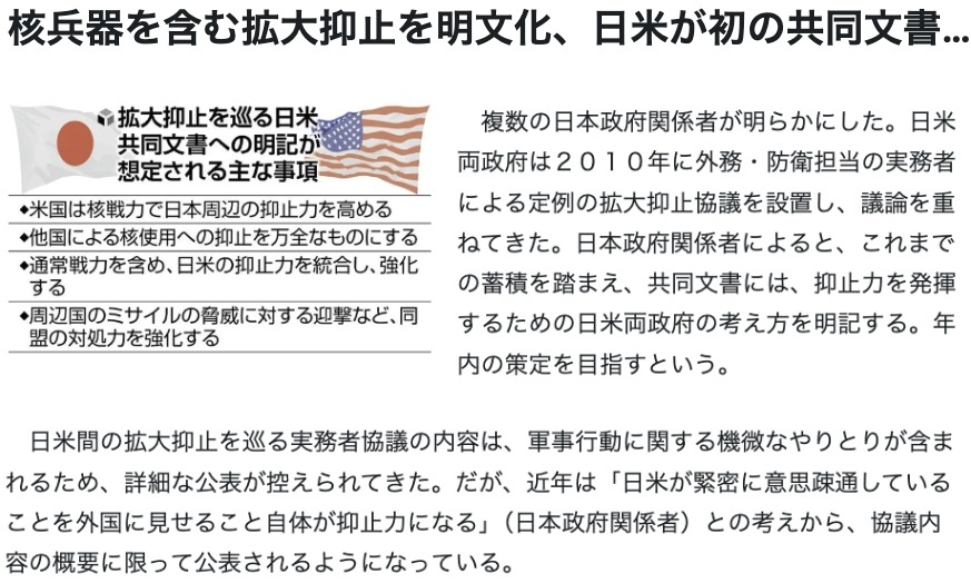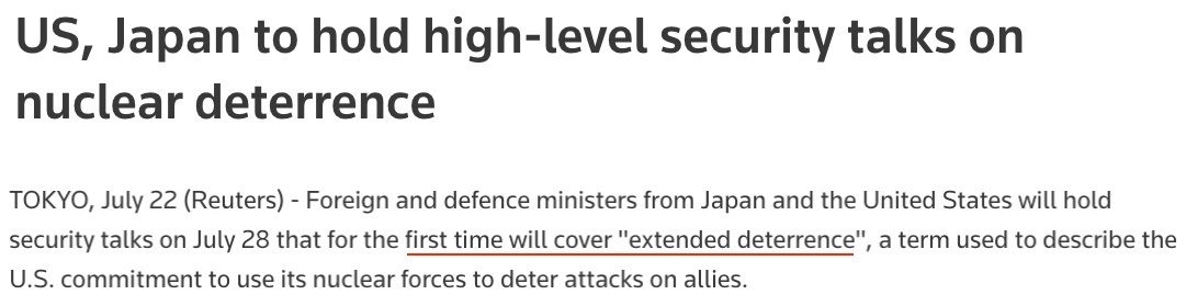 據多家外媒報道,日本和美國將于本月28日在東京舉行兩國外交部長和國防部長“2+2”會談,首次討論“延伸威懾”,即美國承諾使用包括核武器在內的軍事力量保護盟國的問題。