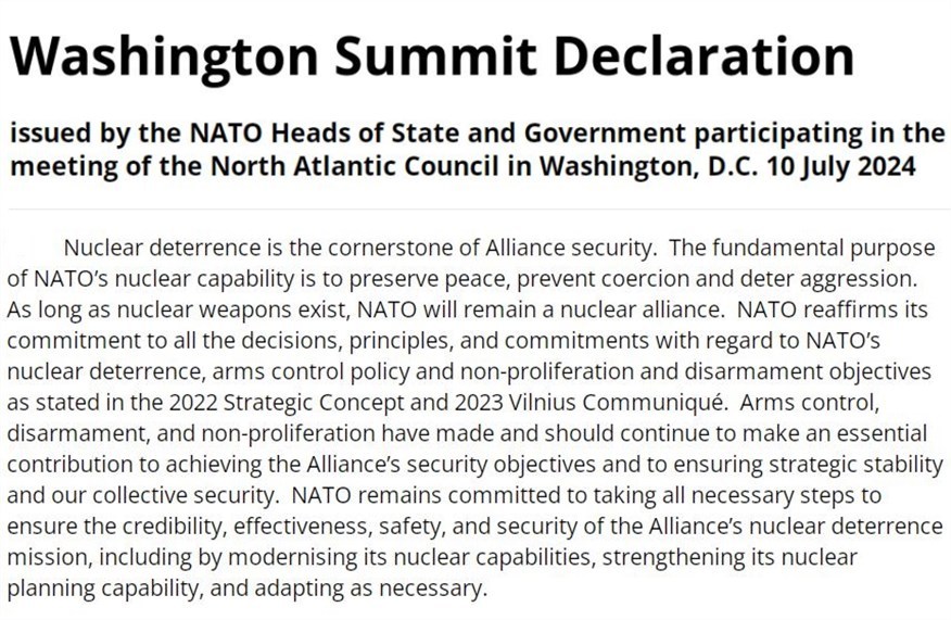 根據本月早些時候北約華盛頓峰會的最后聲明,作為威懾俄羅斯等戰(zhàn)略對手的重要措施之一,北約決定進一步強化核實力。