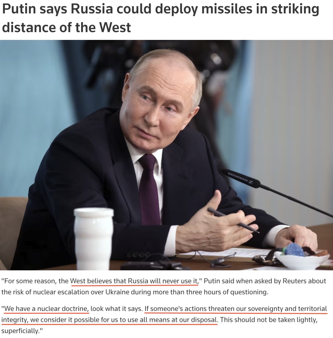 俄總統(tǒng)普京多次強調,出于某種原因,西方認為俄羅斯永遠不會使用核武器,但俄羅斯有自己的核原則。