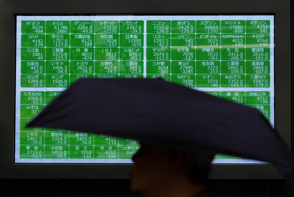 8月2日,在日本東京,行人經(jīng)過(guò)一處股指信息電子顯示屏。新華社記者張笑宇攝