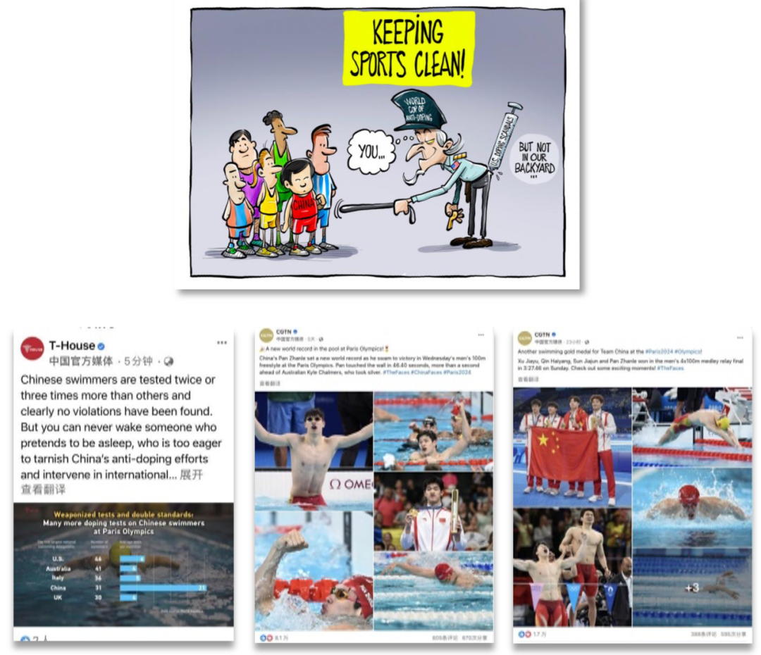 各類融媒體產(chǎn)品也以豐富的形式切入這一話題,直戳美西方痛點,堅決捍衛(wèi)奧林匹克精神。CGTN《漫話天下》專欄推出系列漫畫產(chǎn)品,呼吁美國應(yīng)該反省其體育界的興奮劑問題,而非別有用心地針對中國運動員?!恫桊^論道》(T-House)用數(shù)據(jù)說話,發(fā)布原創(chuàng)數(shù)據(jù)圖文《中國游泳隊接受高頻檢測 美國無視結(jié)果繼續(xù)抹黑中國》《美國運動員興奮劑違規(guī)率比中國高6倍,誰才是“作弊重災(zāi)區(qū)”?》,引用世界反興奮劑機(jī)構(gòu)的權(quán)威報告,客觀比對違規(guī)數(shù)據(jù),揭露美國“借題發(fā)揮”的虛偽面目。玉淵譚天制作原創(chuàng)視頻,模擬一名普通美國運動員在美國興奮劑全產(chǎn)業(yè)鏈庇護(hù)下,取得“用藥豁免權(quán)”的案例,揭示美國這一全產(chǎn)業(yè)鏈如何幫助運動員作弊。