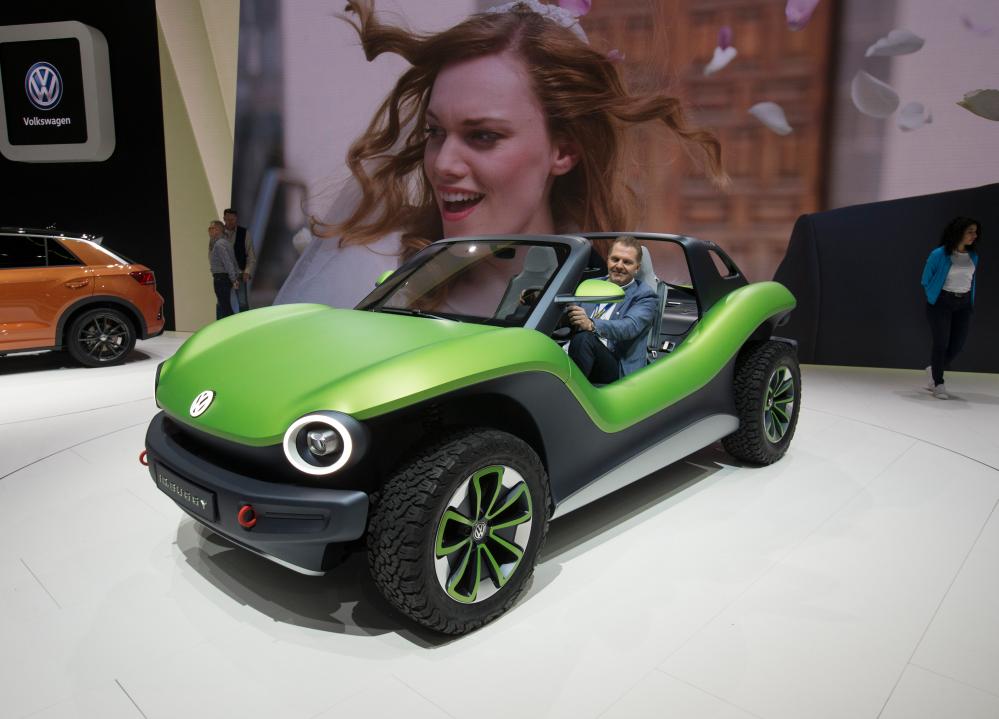 這是2019年3月6日在瑞士日內(nèi)瓦國際車展上拍攝的大眾汽車公司的全地形電動概念車ID.BUGGY。新華社記者徐金泉攝