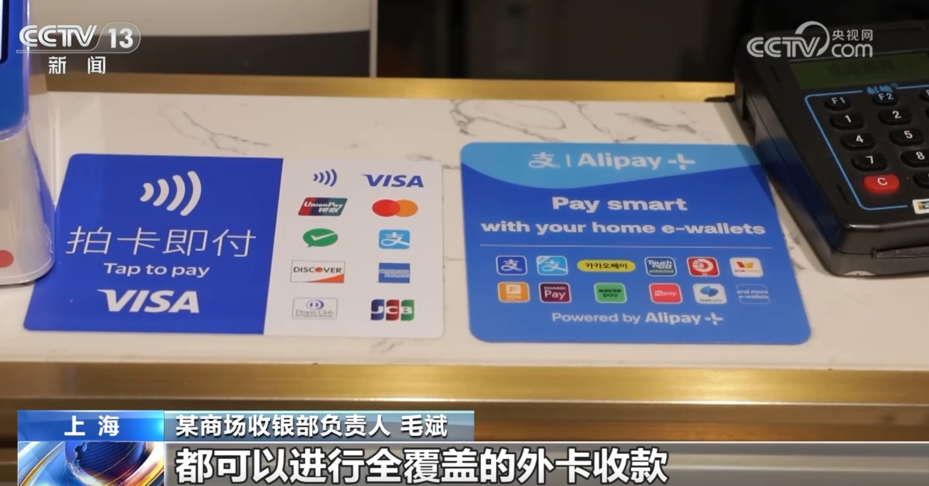 某商場收銀部負(fù)責(zé)人毛斌稱:“外國顧客到我們商場購物越來越多了,所以我們針對(duì)外國顧客的付款方式進(jìn)行了收銀方面的調(diào)整改進(jìn),目前商場所有的收銀設(shè)備都可以進(jìn)行全覆蓋的外卡收款。”
