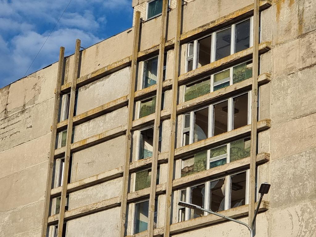 這是9月10日在烏克蘭切爾卡瑟州拍攝的在無人機爆炸沖擊中受損的建筑。新華社發(fā)