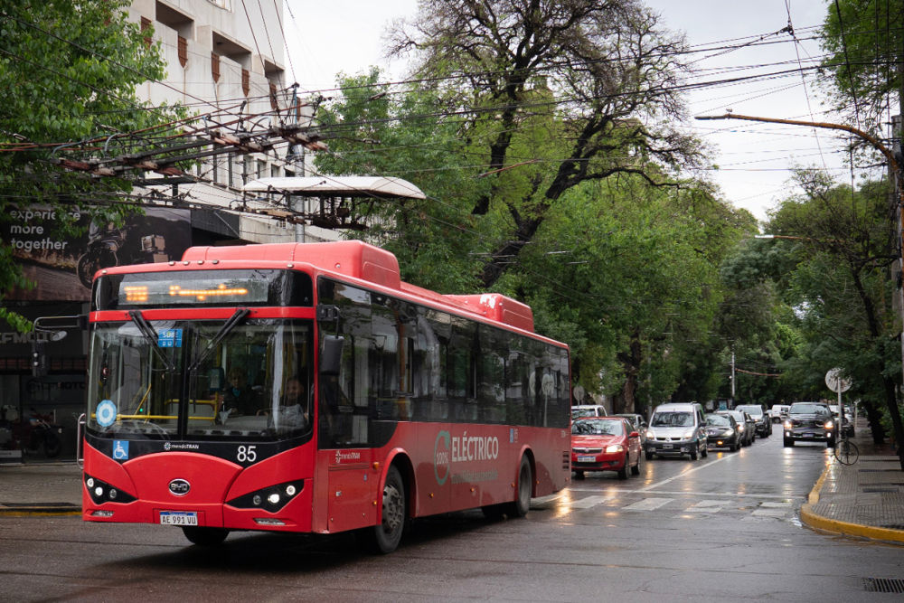 拜訪完酒莊,記者來到門多薩市區(qū)。這里,一些紅色公交車穿梭于林蔭道,車身上“百分之百電動”的標語非常醒目。這是門多薩于2019年從比亞迪和中通客車購入的電動巴士。由此當?shù)氐谝恢щ妱庸卉囮犝酵度脒\營。