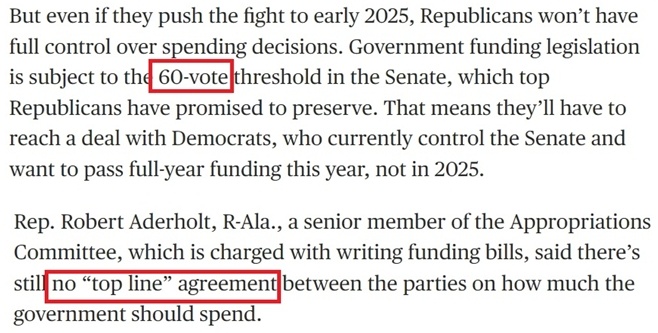 2024財(cái)年預(yù)算案就曾在驚險(xiǎn)異常的兩黨爭(zhēng)斗甚至共和黨內(nèi)斗中像擠牙膏一樣折騰了整整一年時(shí)間才消?!,F(xiàn)在又輪到了早從10月就開(kāi)始的2025財(cái)年的預(yù)算問(wèn)題。
