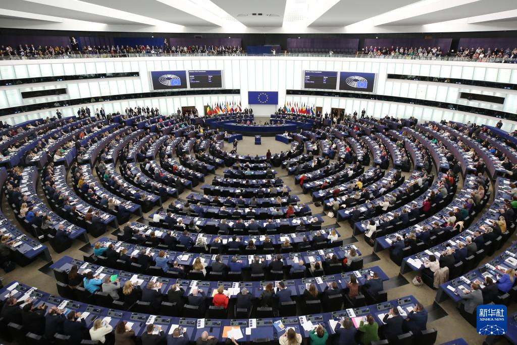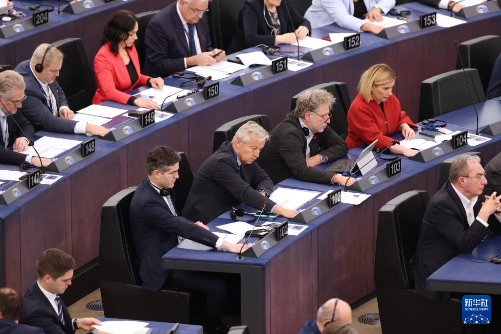 11月27日,在法國斯特拉斯堡歐洲議會會議現場,歐洲議會議員投票表決。新華社記者 趙丁喆 攝