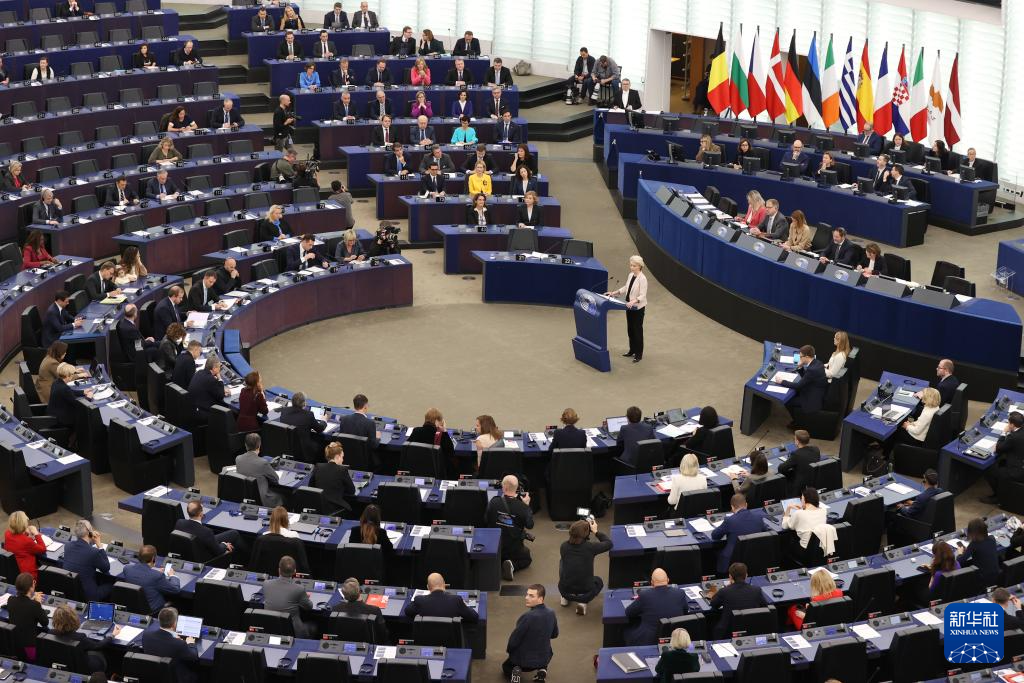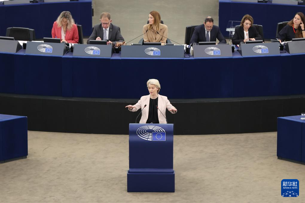 11月27日,在法國斯特拉斯堡,馮德萊恩在歐洲議會會議上講話。新華社記者 趙丁喆 攝