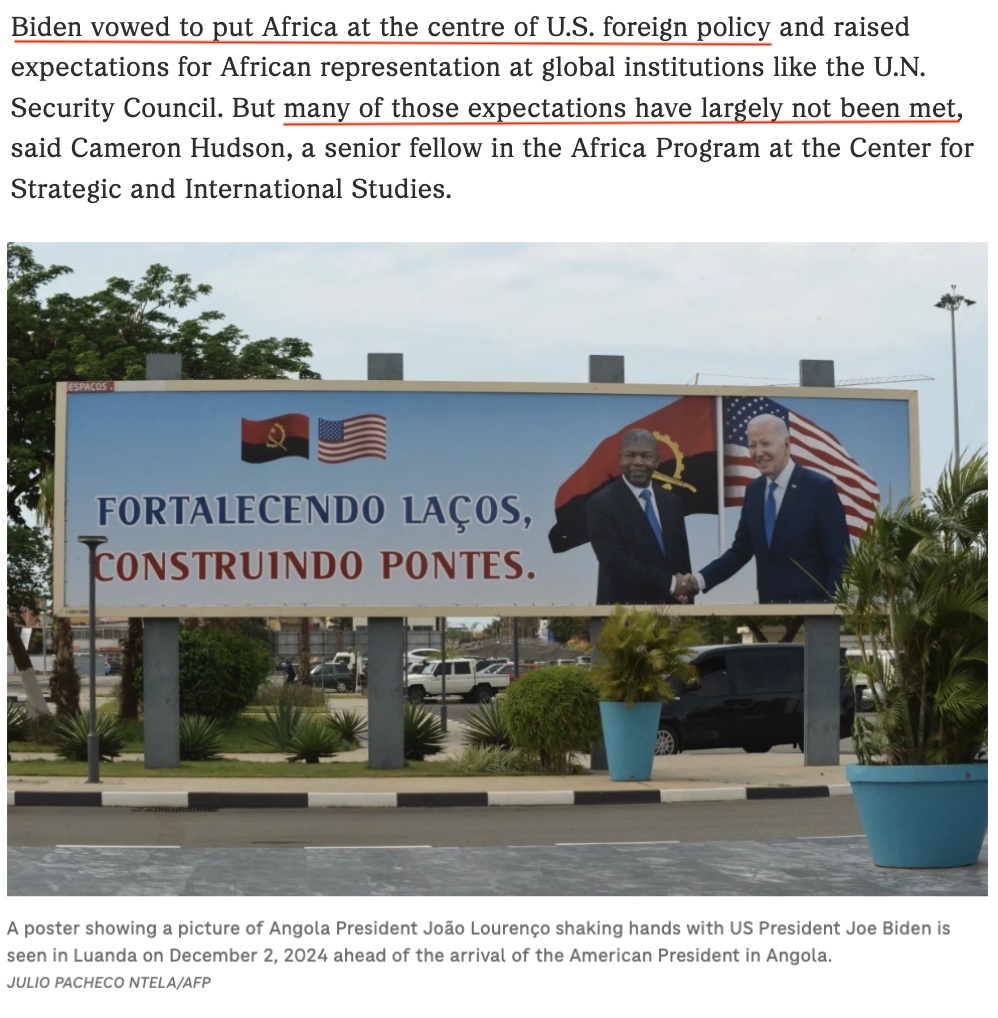 △美國有線電視新聞網(wǎng)報道:這是一場拖了太久的訪問。2022年在華盛頓舉行的美非峰會上,拜登曾承諾2023年訪問非洲,但他食言了。即便是這次原本安排在10月的安哥拉之行也因美國國內(nèi)發(fā)生颶風(fēng)災(zāi)害而推遲。