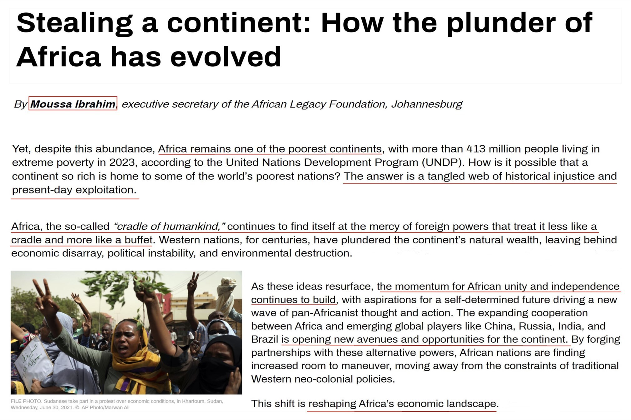 “這是外國勢力剝奪非洲國家資源的又一例證”