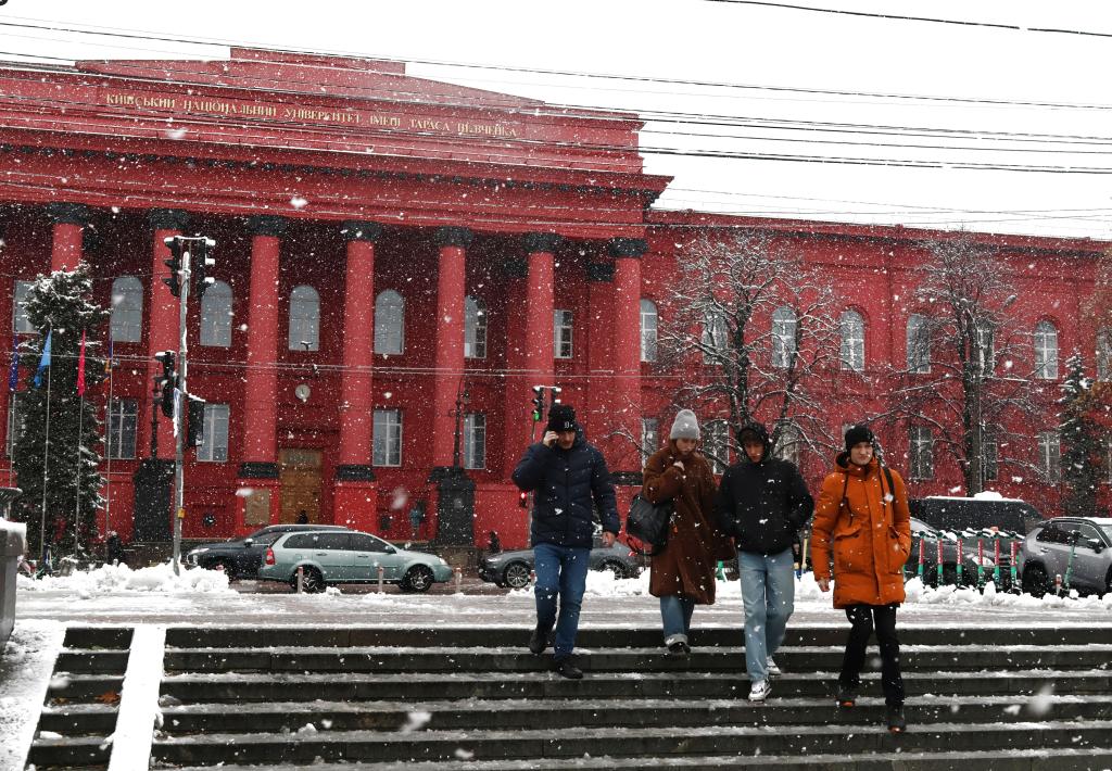 11月21日,在烏克蘭首都基輔,人們經(jīng)過國(guó)立基輔大學(xué)。新華社發(fā)(羅曼·佩圖什科夫攝)