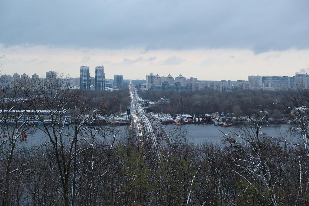 這是11月21日在烏克蘭首都基輔拍攝的白雪映襯下的地鐵橋和第聶伯河。當(dāng)日,烏克蘭首都基輔迎來(lái)今冬初雪。新華社記者李東旭攝