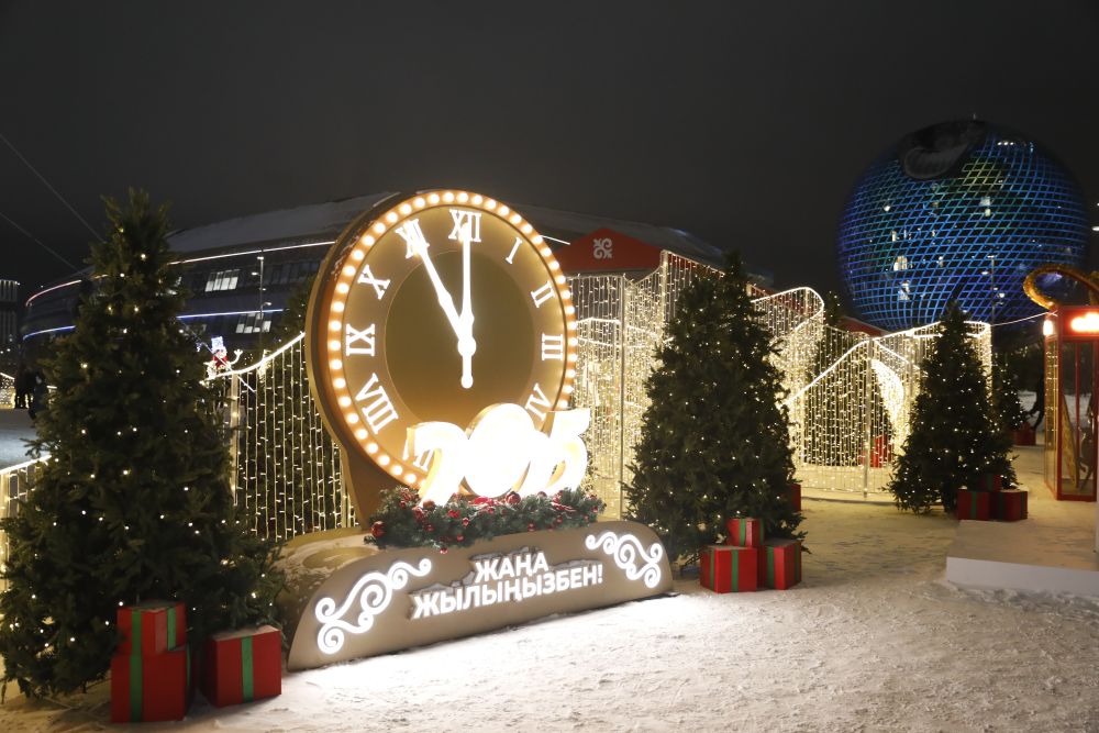 這是2024年12月18日在哈薩克斯坦首都阿斯塔納拍攝的迎接2025年的燈飾。新華社發(fā)(奧斯帕諾夫攝)