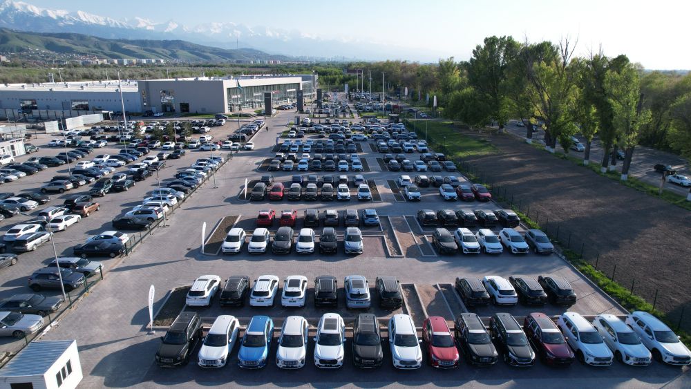 2023年5月5日,汽車停放在哈薩克斯坦阿拉木圖一家大型二手車交易市場(chǎng)(無(wú)人機(jī)照片)。新華社發(fā)(奧斯帕諾夫攝)