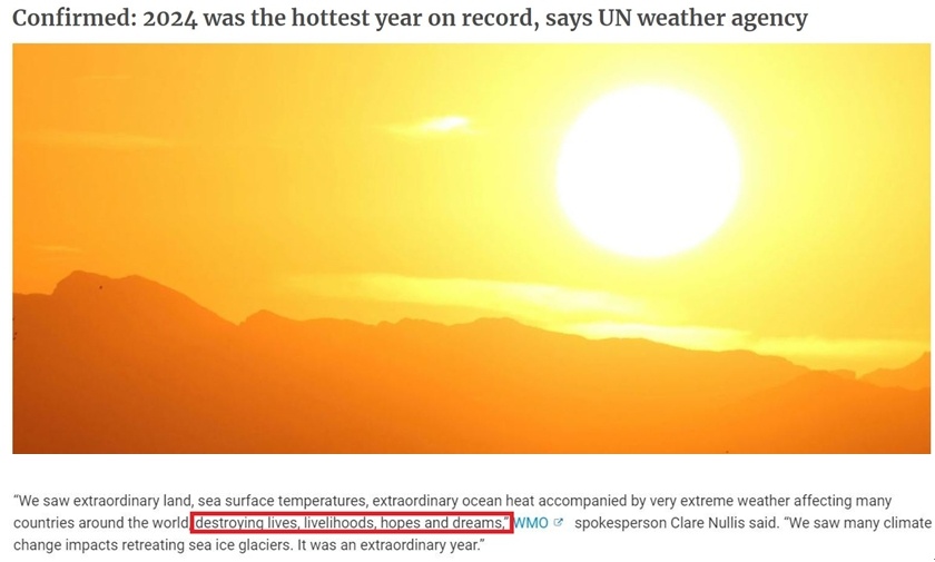 根據(jù)該組織對(duì)多份國(guó)際數(shù)據(jù)的綜合分析,2024年全球平均氣溫比工業(yè)化前平均水平高出約1.55攝氏度,是首個(gè)該差額超過(guò)1.5攝氏度的年份。