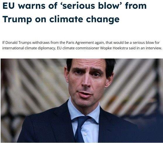 歐盟委員會(huì)負(fù)責(zé)氣候行動(dòng)的委員沃普克·胡克斯特拉日前警告,如果特朗普再次讓美國(guó)退出《巴黎協(xié)定》,全球?yàn)閼?yīng)對(duì)氣候變化所做的努力將受到嚴(yán)重打擊。