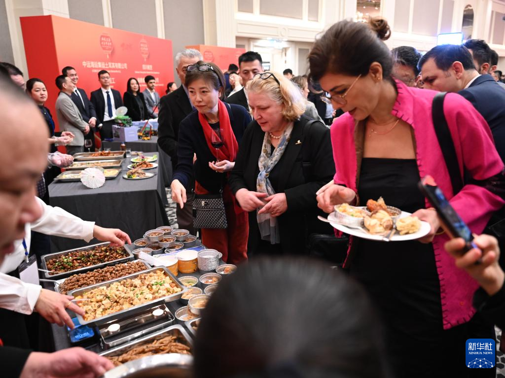 1月19日,在土耳其伊斯坦布爾,來賓在中國(guó)駐伊斯坦布爾總領(lǐng)館舉辦的新春招待會(huì)上品嘗美食。新華社記者 劉磊 攝