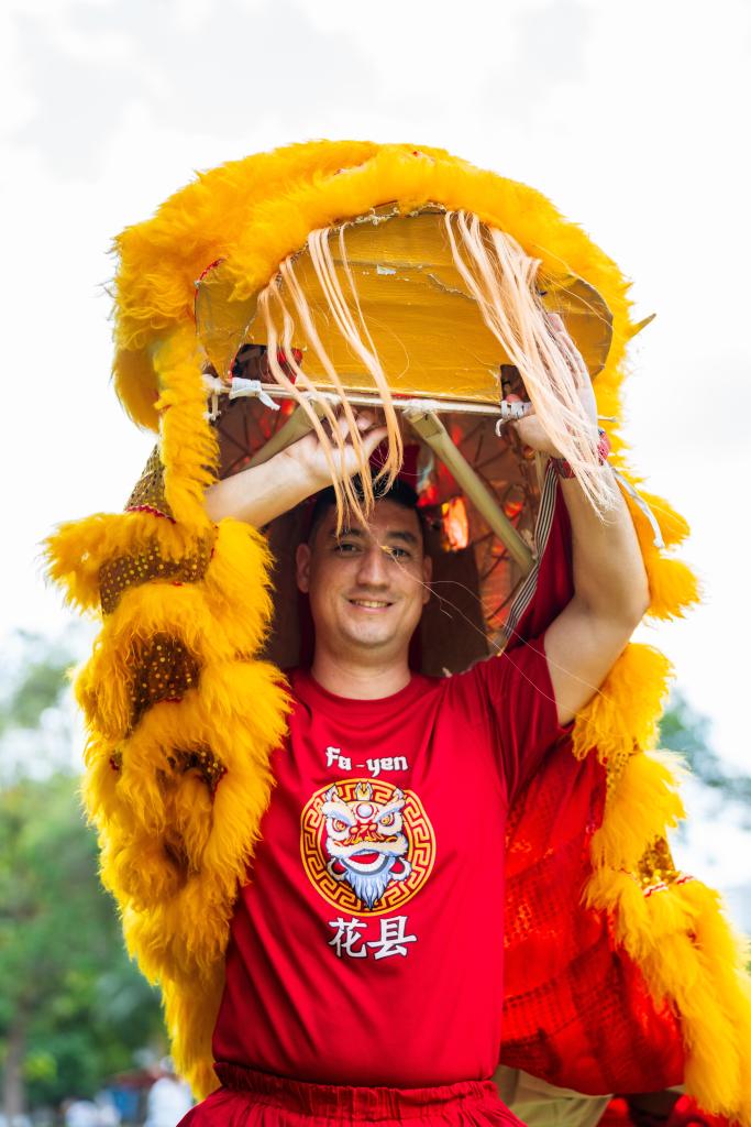 2021年,中國農(nóng)歷新年成為巴拿馬全國性節(jié)日。37歲的巴拿馬人伊萬·胡斯蒂尼亞尼,每逢春節(jié)都會和家人一起出門觀看慶?;顒?,尤其是舞獅表演。出于對舞獅的喜愛,兩年前,他與兩個孩子加入擁有50多年歷史的花縣醒獅團。