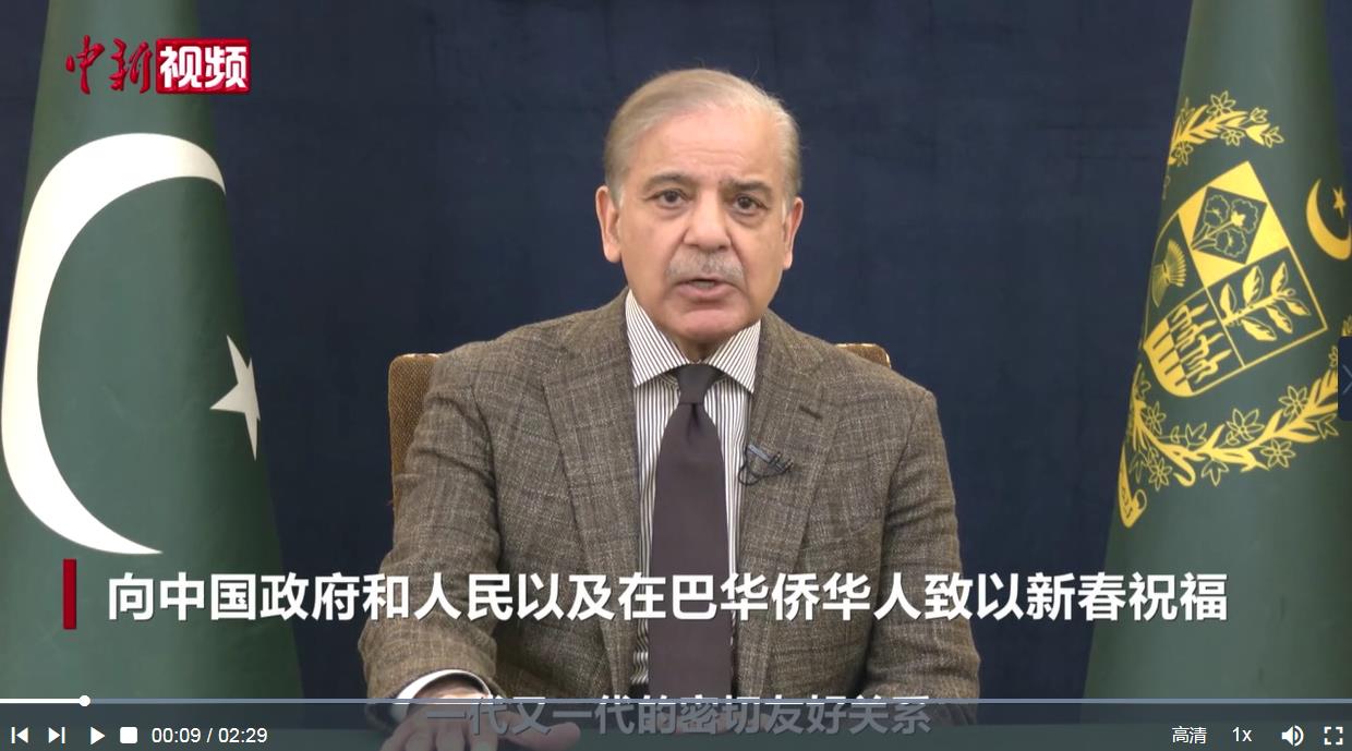 當(dāng)?shù)貢r(shí)間1月28日,巴基斯坦總理夏巴茲發(fā)表視頻致辭,向中國(guó)政府和人民以及在巴華僑華人致以新春祝福,表示巴方將繼續(xù)與中方攜手為全球和平、繁榮與和諧作出貢獻(xiàn)。(記者 薄雯雯制作 徐妙巧 視頻來源 巴基斯坦駐華大使館)