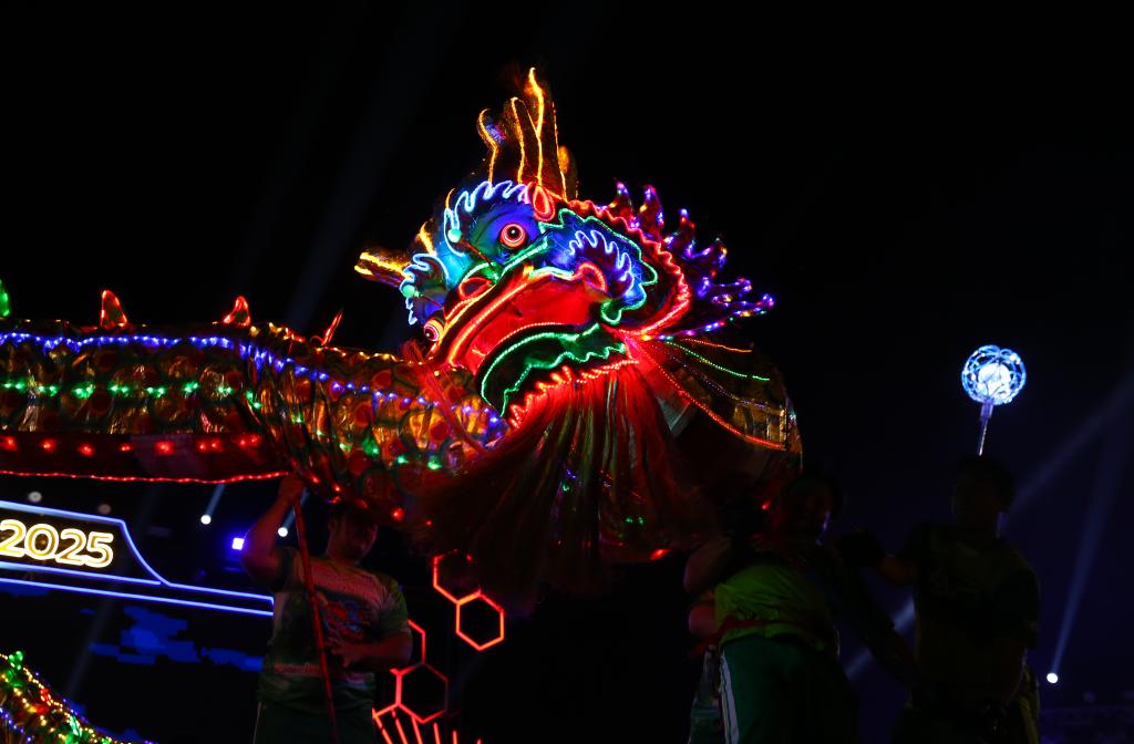1月26日,演員在泰國那空沙旺湄南河畔舉行的春節(jié)慶?;顒由媳硌菸椠垺P氯A社記者孫瑋彤攝
