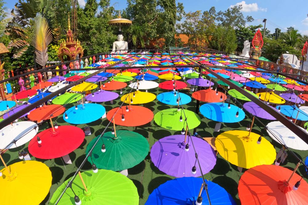 這是2022年11月9日在泰國清邁市博桑傘村拍攝的紙傘。新華社記者王騰攝