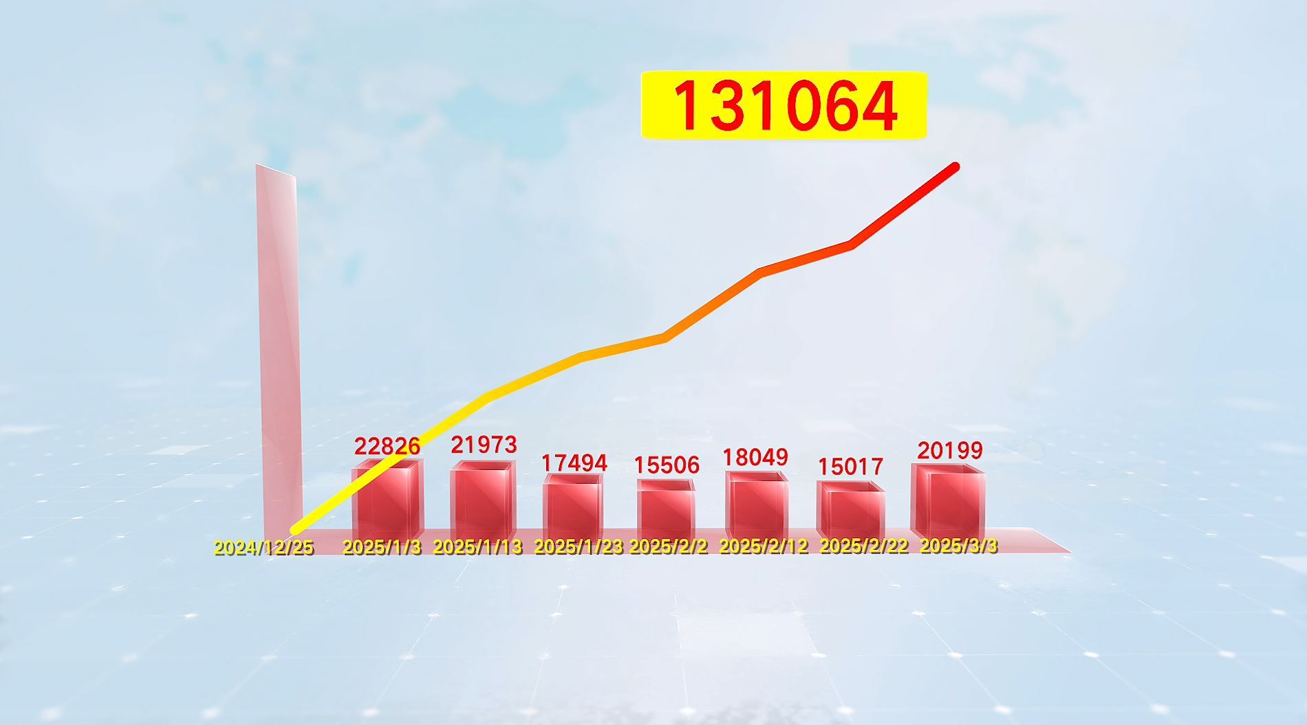 從去年12月25日全國兩會召開時間確定,到今年3月3日這個時間段,在對1000多家海外媒體的報道、200多個海外智庫的研究文章、5個海外社交媒體平臺的貼文以及50多個播客內容進行大數(shù)據追蹤后,我們發(fā)現(xiàn),這一統(tǒng)計區(qū)間內關注兩會的報道和文章總數(shù)達到了131064篇。