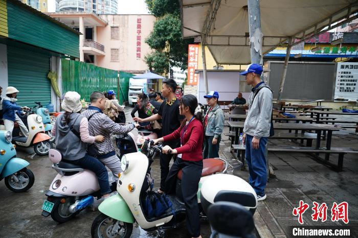 3月16日,云南省紅河州河口縣街頭,數(shù)位越南游客騎著租來(lái)的電動(dòng)車游玩。中新社記者 劉冉陽(yáng) 攝