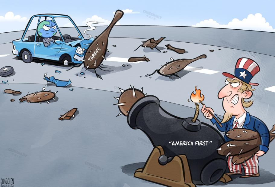 貿(mào)易保護(hù)砸自己的腳。(作者:中國日報(bào) 羅杰)