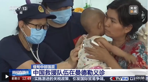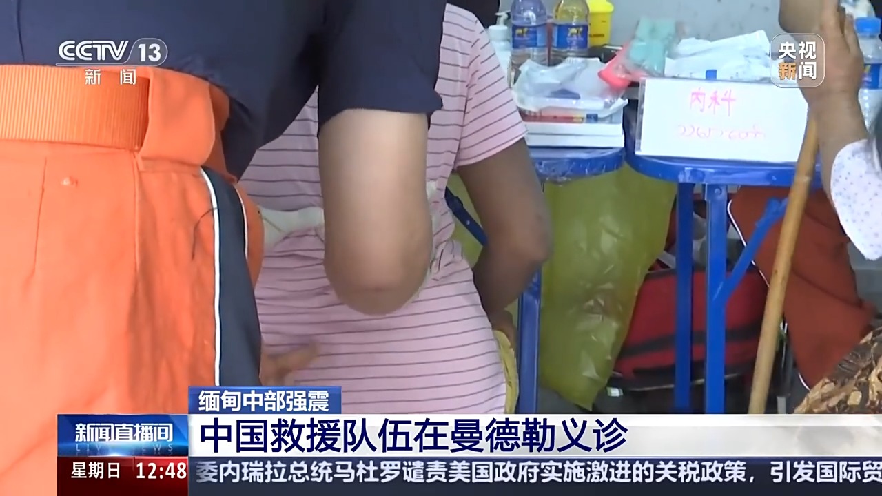 總臺(tái)央視記者 唐國榮:這里是緬甸曼德勒的多金堰地區(qū),來自中國救援隊(duì)、中國國際救援隊(duì)和中國香港救援隊(duì)的醫(yī)療隊(duì)員們,來到這里為緬甸地震中受災(zāi)的人員開展各種醫(yī)療救助服務(wù)。