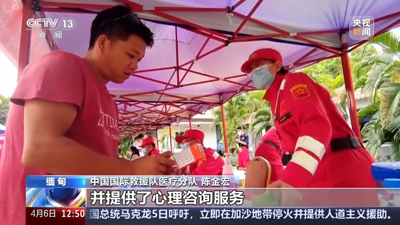 中國國際救援隊(duì)醫(yī)療分隊(duì) 陳金宏:今天我們來到這里,開展內(nèi)外婦兒診療,進(jìn)行防疫消殺的培訓(xùn),并提供了心理咨詢服務(wù),下一步結(jié)合曼德勒市傷情災(zāi)情,我們會(huì)持續(xù)為當(dāng)?shù)貫?zāi)民做好醫(yī)療服務(wù)。