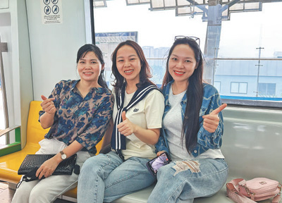 越南河內市民點贊由中企承建的該國首條城市輕軌吉靈—河東線?! ”緢笥浾?孫廣勇攝