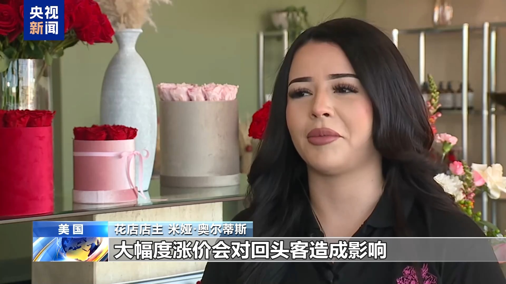 花店店主 米婭·奧爾蒂斯:關(guān)稅政策正在傷害像我家這樣的小企業(yè),我們的玫瑰是厄瓜多爾進口的。