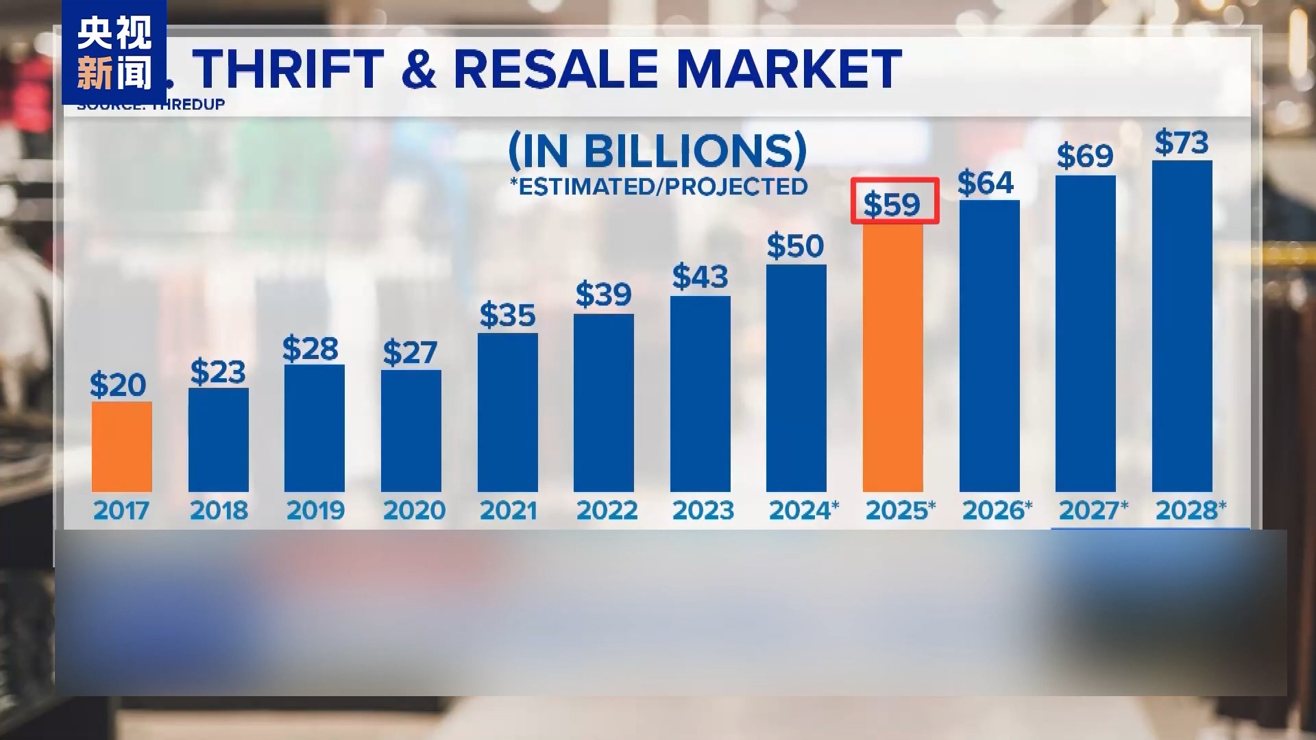 美國二手商品交易在線平臺思雷達普公司的數(shù)據(jù)顯示,2017年美國二手交易市場的價值只有200億美元。根據(jù)該公司的預(yù)測,受關(guān)稅政策影響,2025年二手交易市場價值將升至590億美元,此后也將一路飆升,照此發(fā)展2028年的價值將達到730億美元。