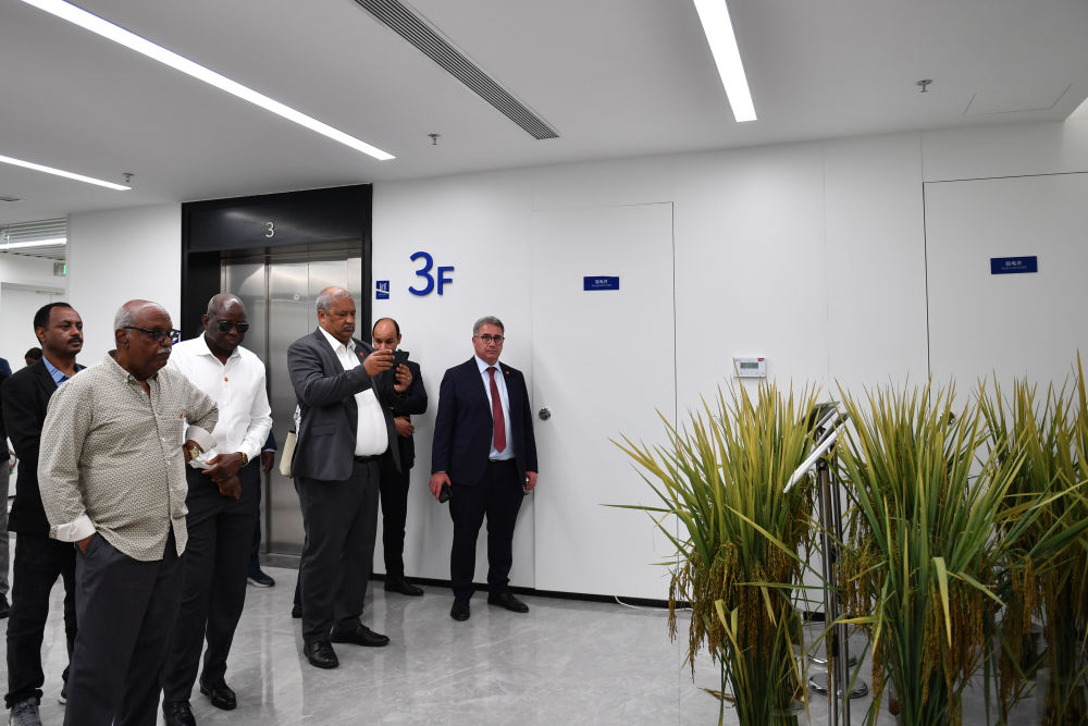 5月14日,非洲駐華使節(jié)代表團(tuán)在湖南雜交水稻研究中心參觀。新華社記者 陳振海 攝